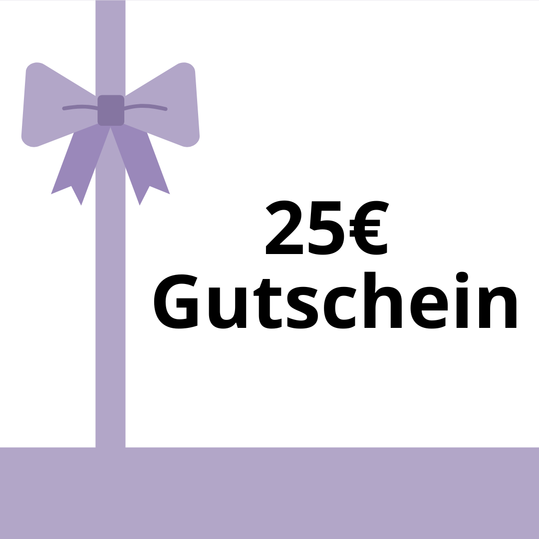 Mit dem Kauf des Gutscheins erhältst du ein ausdruckbares PDF mit einem Gutscheincode im Wert von 25€, der auf alle aktuellen und zukünftigen Produkte in meinem Shop gültig ist.